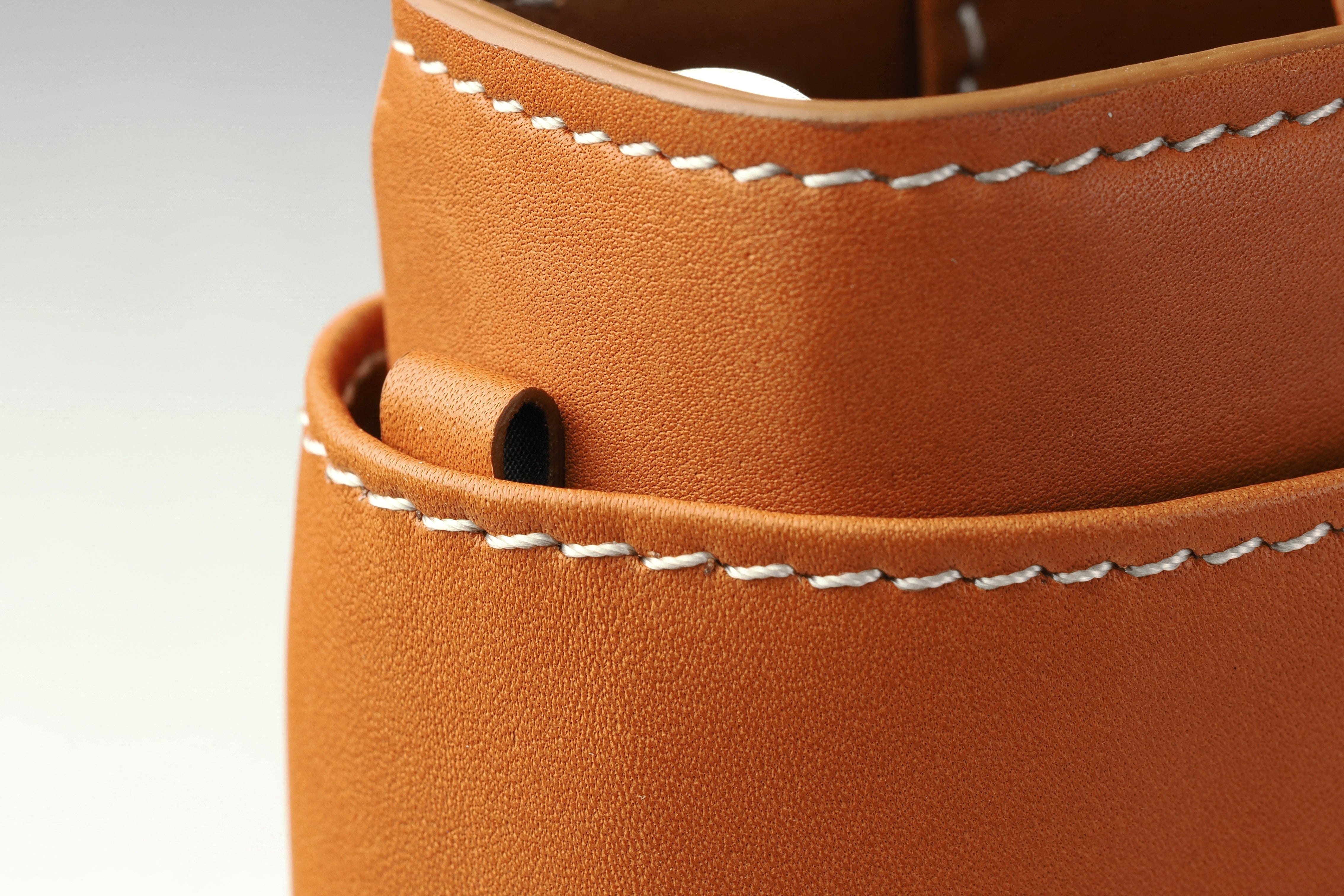 エテルナムに採用しているカーフは、極上の素材から生まれています。原皮には、世界最高峰の産地として知られるオランダ産を使用。寒冷な気候に育まれた革は、繊維が緻密で、美しい表情を見せてくれます。鞣しを担うのは、イタリア・サンタクローチェの名門タンナー「ビクトリア社」。独自のレシピで仕上げられたカーフは、究極の手触りを誇り、さらに傷に強く高い復元力を備えた最高級の革です。